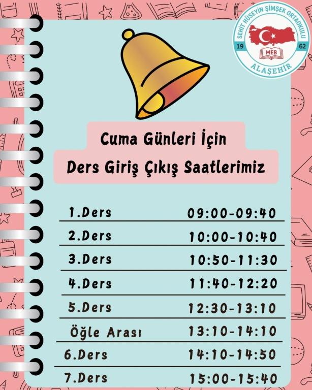 Cuma günleri 13.10 da diğer günler 12.20 de öğle arasına çıkılacaktır.